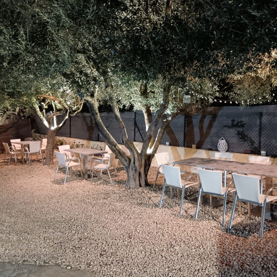 Profitez d’une cour ombragée par des oliviers, idéale pour un repas calme et convivial.